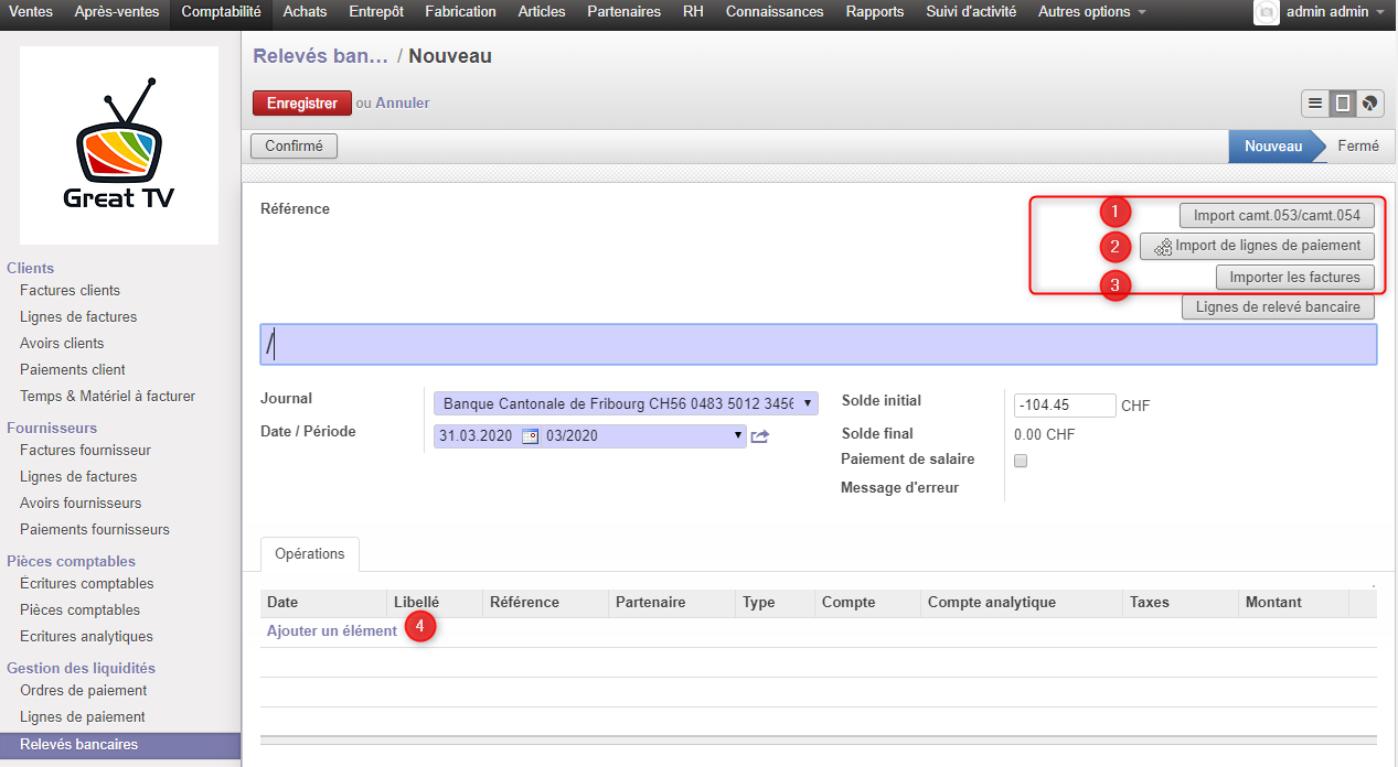 4. Automatisation des comptabilisations bancaires grâce au Camt.053 et Camt.054 disponible dans la dernière version CID ERP